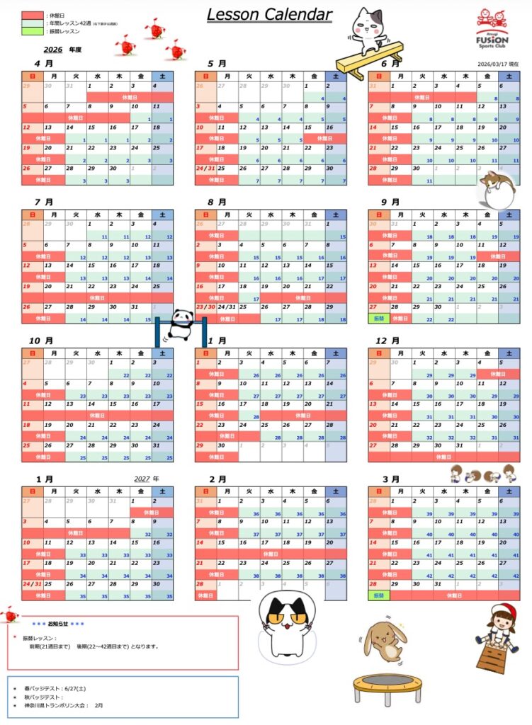 2026年度 年間スケジュール PDFでダウンロードできます 休館日以外は開講しております。お問合せについては、指導員がレッスンを行っている関係上、「お問合せフォーム」からご連絡いただく方が確実です。 .fa-comments-o